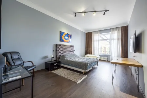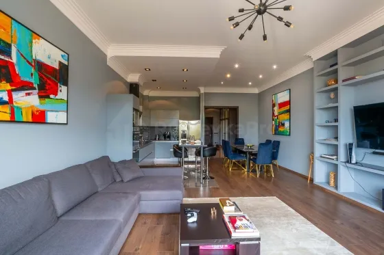 Приобретите 2 комнатную квартиру 117 м2с балконом в камерном доме премиального коттеджного поселка Азарово. Гостиная -кухня -столовая- 44,2 м2, спальня 30,2 м2, санузел с просторной душевой кабиной, гардеробная комната, прихожая 19 м2, гостевой санузел, отдельная постирочная. В квартире сделан качественный дизайнерский ремонт из материалов премиум класса. Теплые водяные полы под керамогранитным покрытием. Квартира укомплектована всей необходимой мебелью, бытовой и кухонной техникой Bosch немецкого производства, сантехника Villeroy & Boch. Вам остается только заехать и жить, наслаждаясь чистым воздухом, прекрасными закатами и тишиной.
