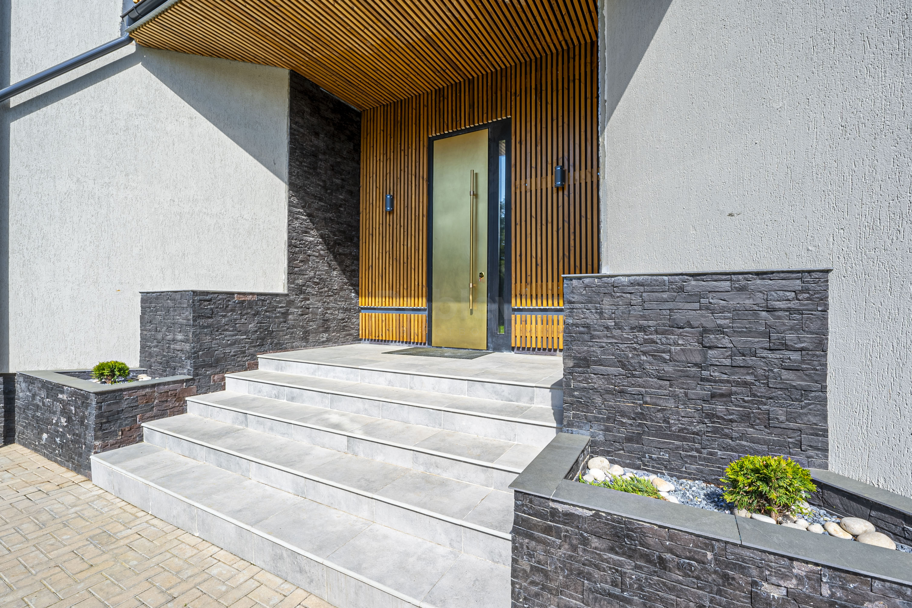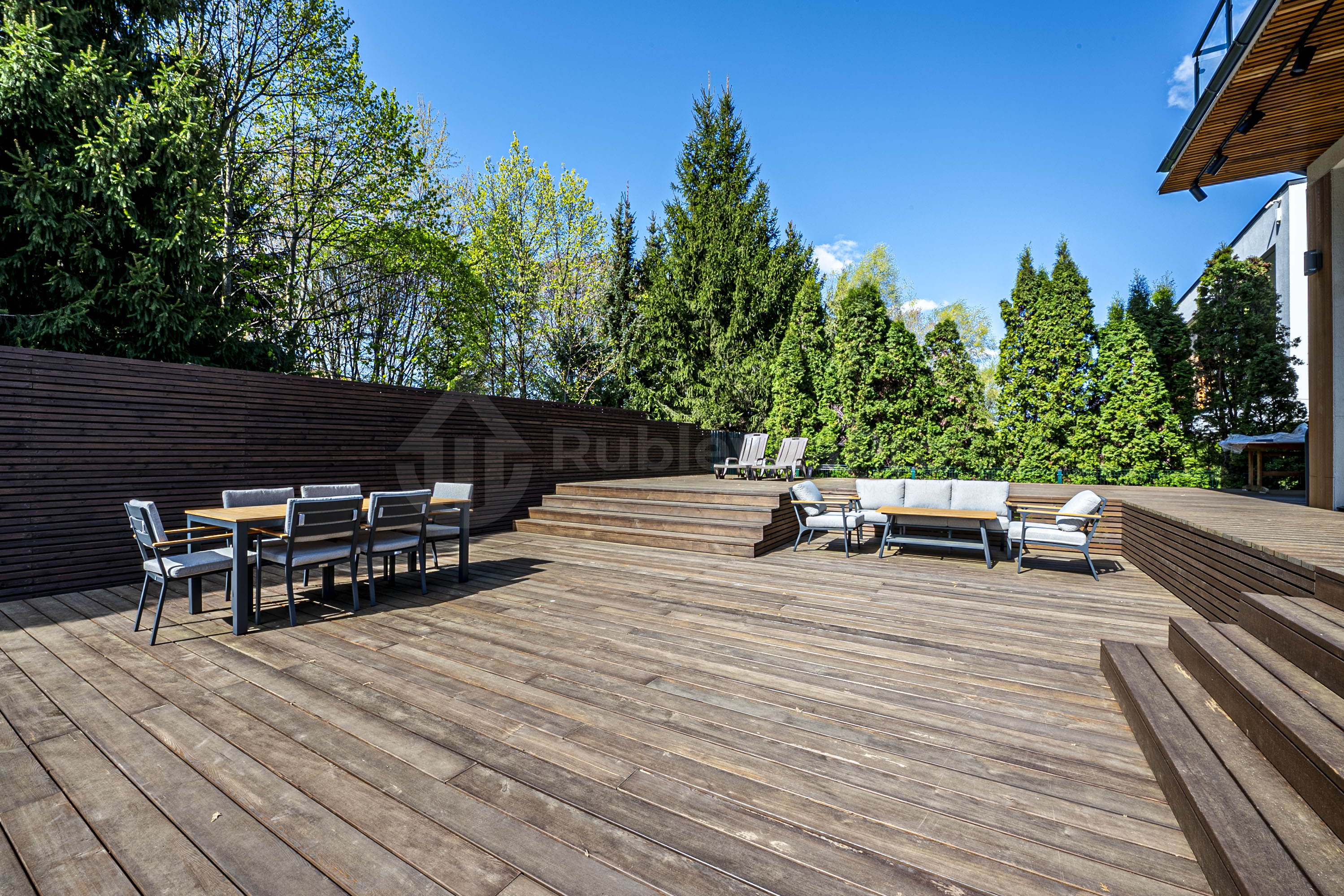 Из холла второго этажа есть выход на просторную открытую террасу с видом на ландшафтный дизайн участка.