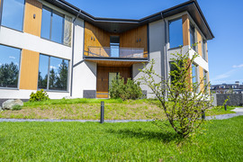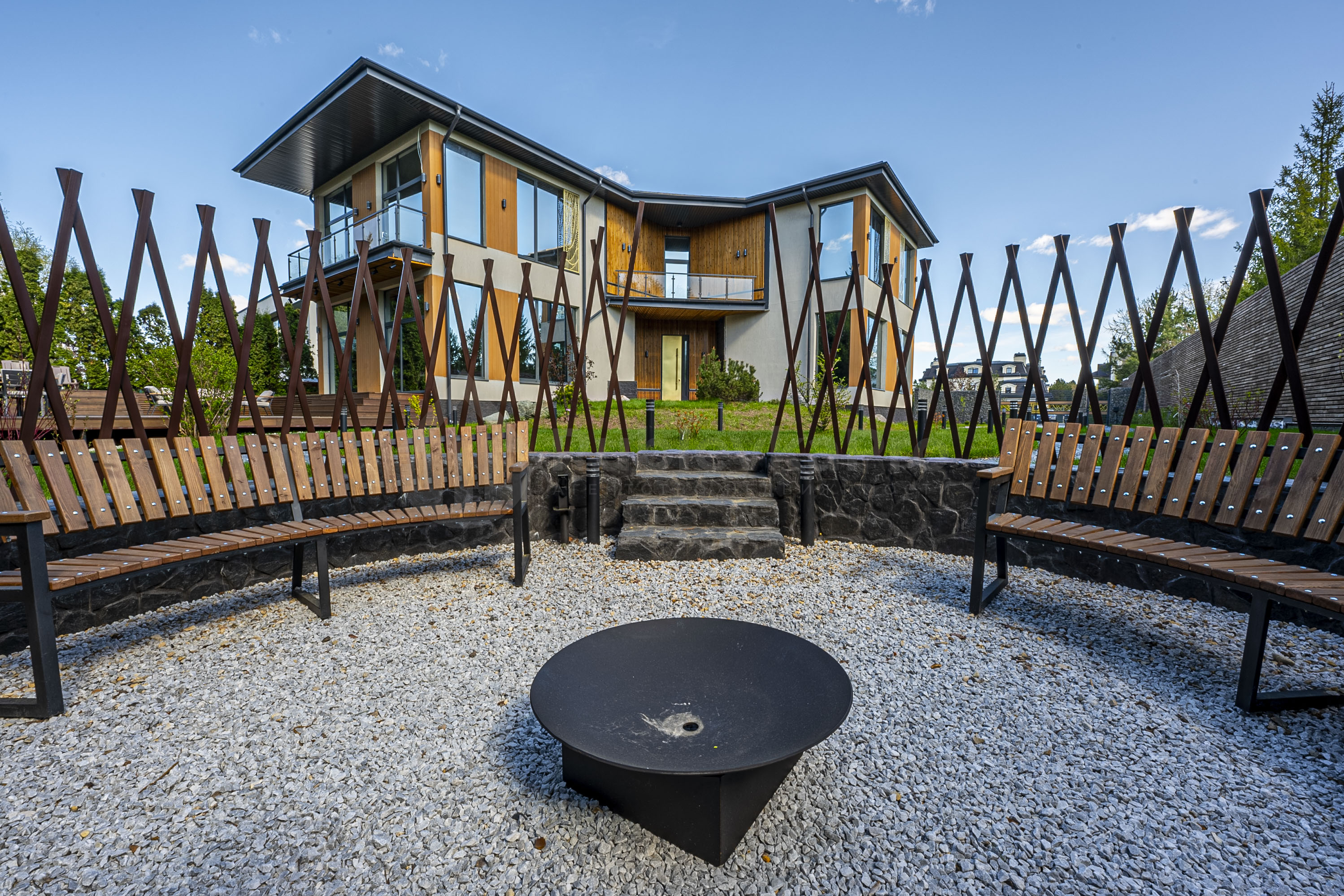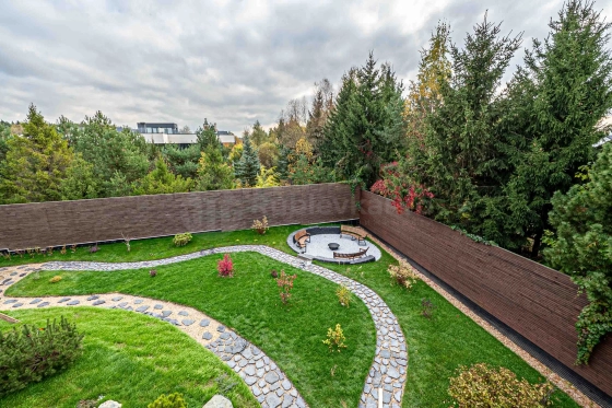 Участок площадью 10 соток спланирован с акцентом на максимальную приватность. Дом окружен взрослыми соснами, которые создают естественную ширму: соседи рядом, но их не видно. Все ремонты по соседству уже завершены, здесь живут постоянно.