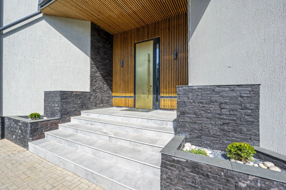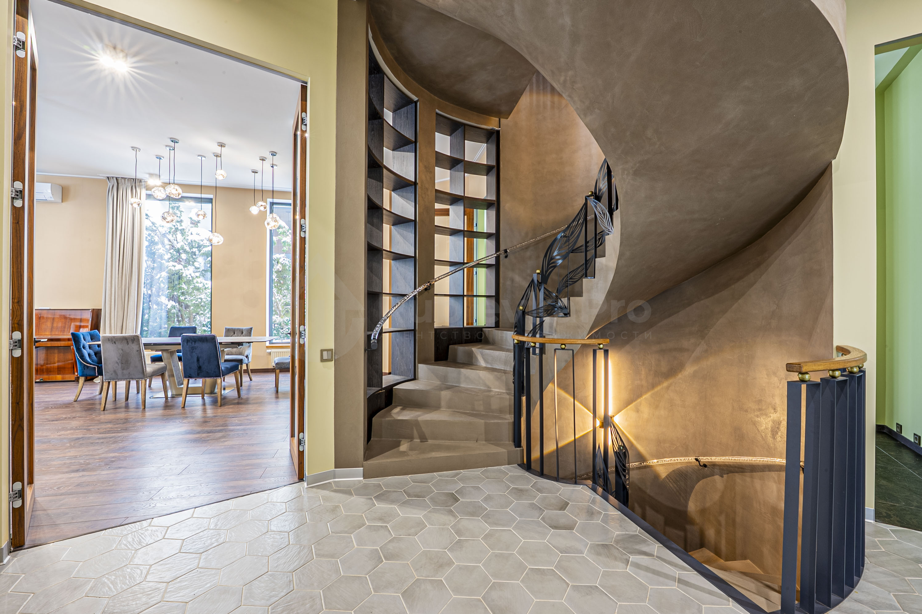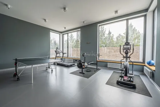 Просторный холл встречает светом и объемом. Большая гостиная с панорамным остеклением, отдельная кухня (изолированная от гостиной, что исключает проникновение запахов), гостевая спальня или тренажерный зал — на ваше усмотрение. Также на этаже: гардеробная и гостевой санузел.