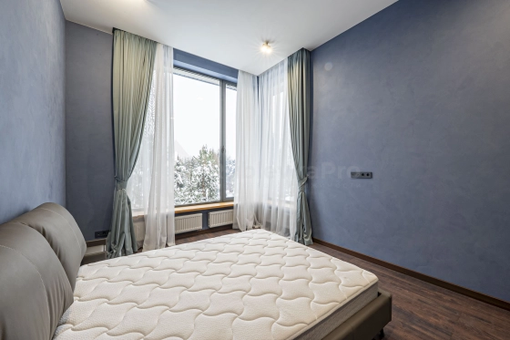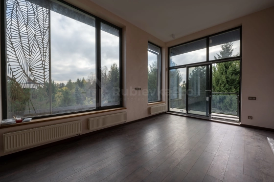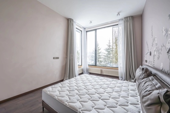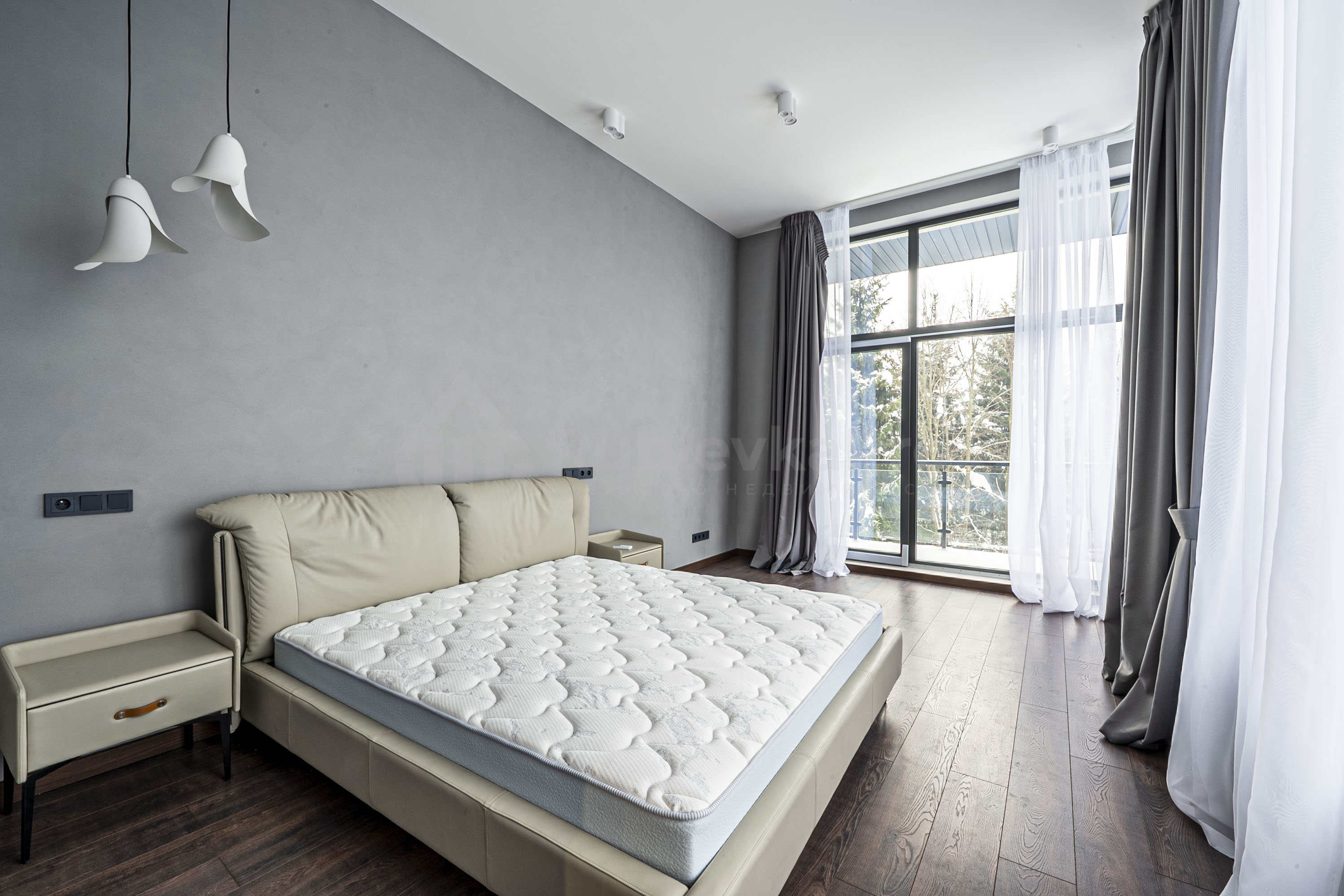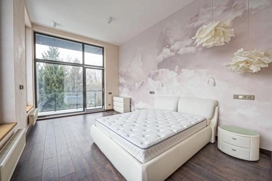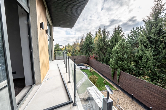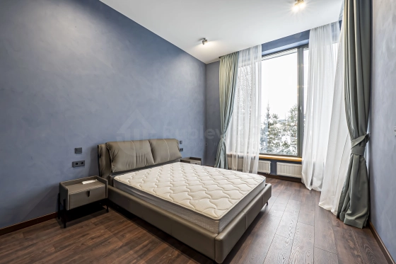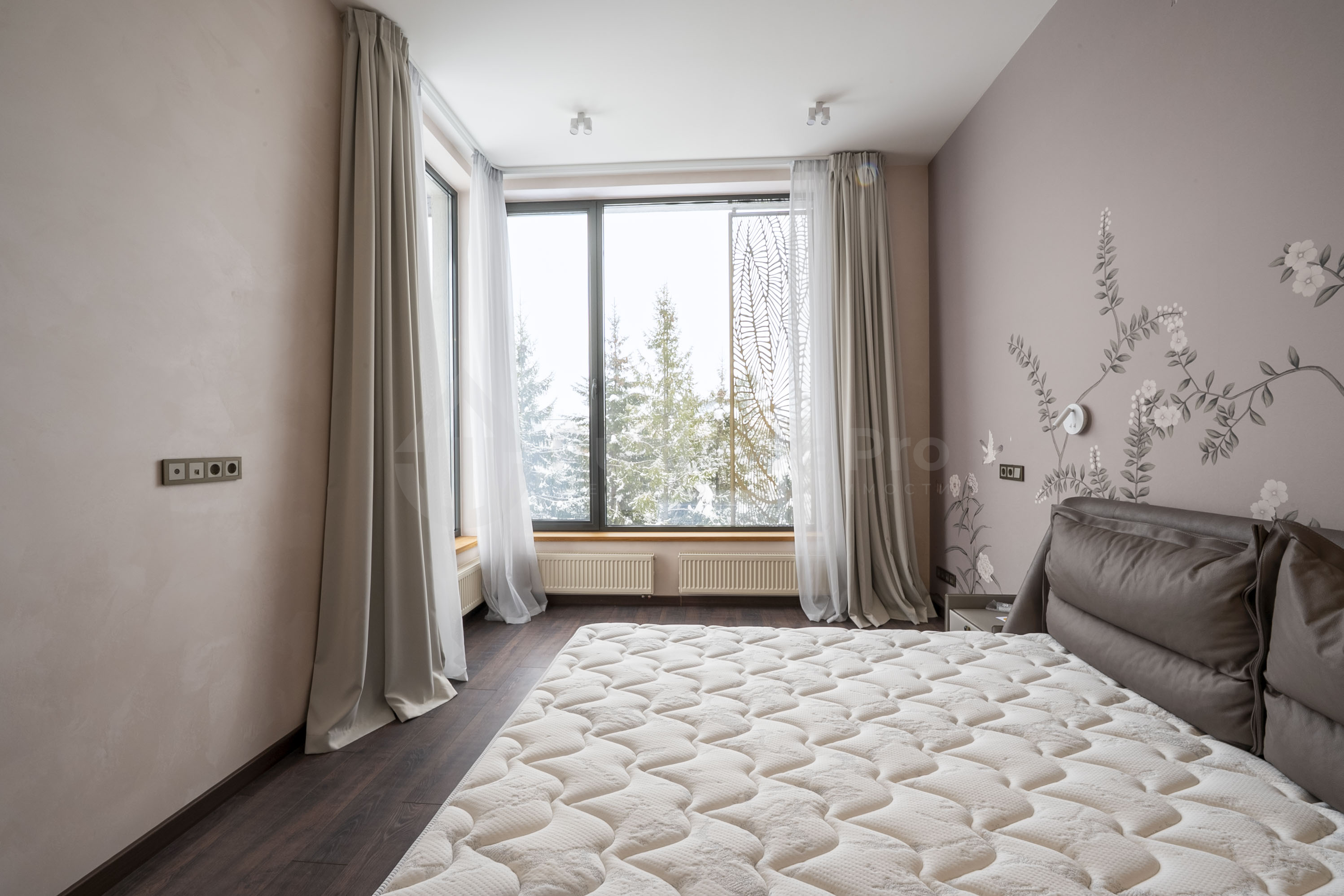 Две спальни имеют выход на балкон с видом на кроны вековых сосен.