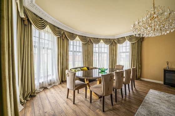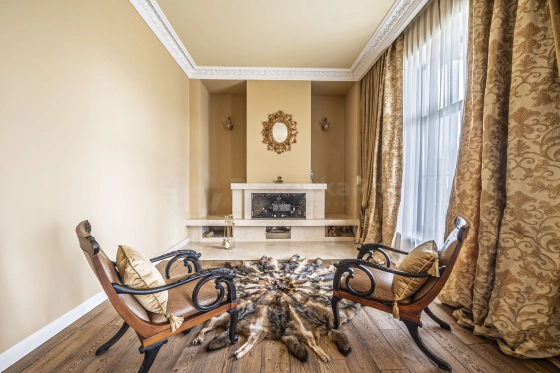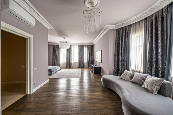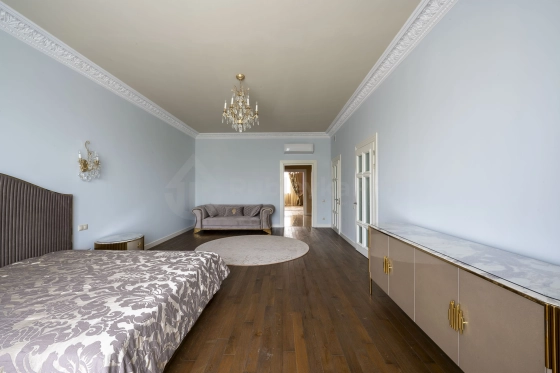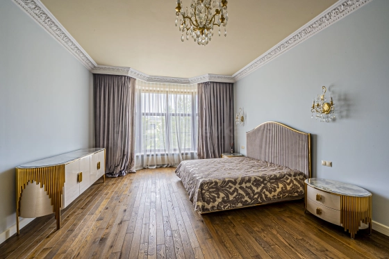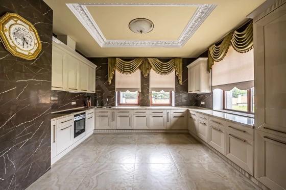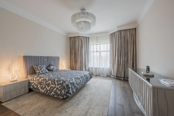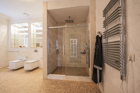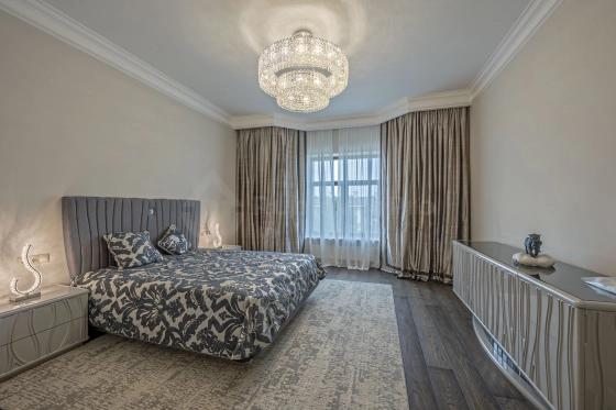 В доме пять спальных комнат, со своими санузлами и гардеробными комнатами, с мебелью и необходимой техникой.