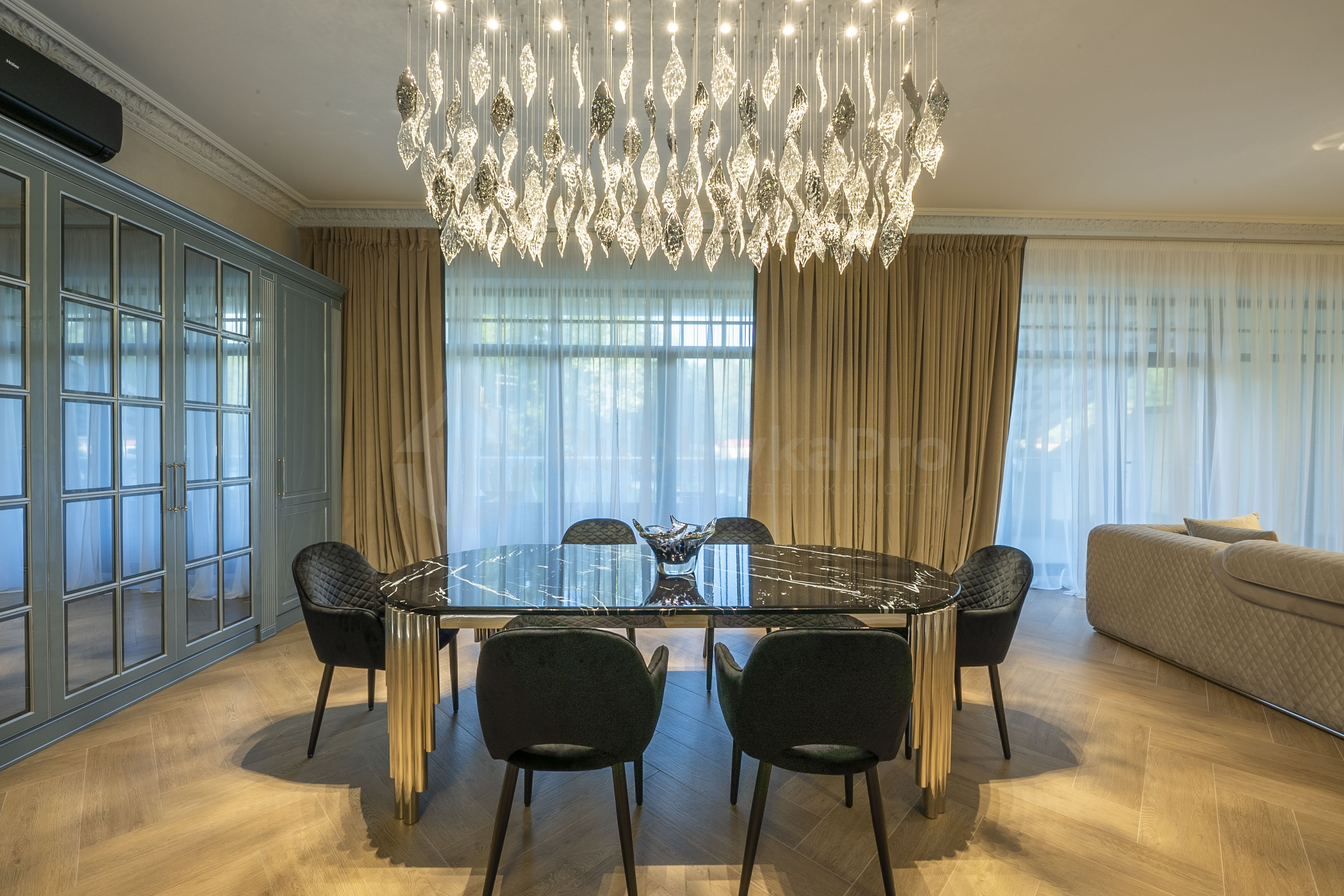 Уютный дом 768 м2 на участке 9,8 сот. Свежий законченный ремонт, полностью меблирован импортной мебелью и техникой. Чтобы не напрягать близких хождением по этажам, предусмотрен лифт, а также удобные лестничные пролеты на пол этажа.