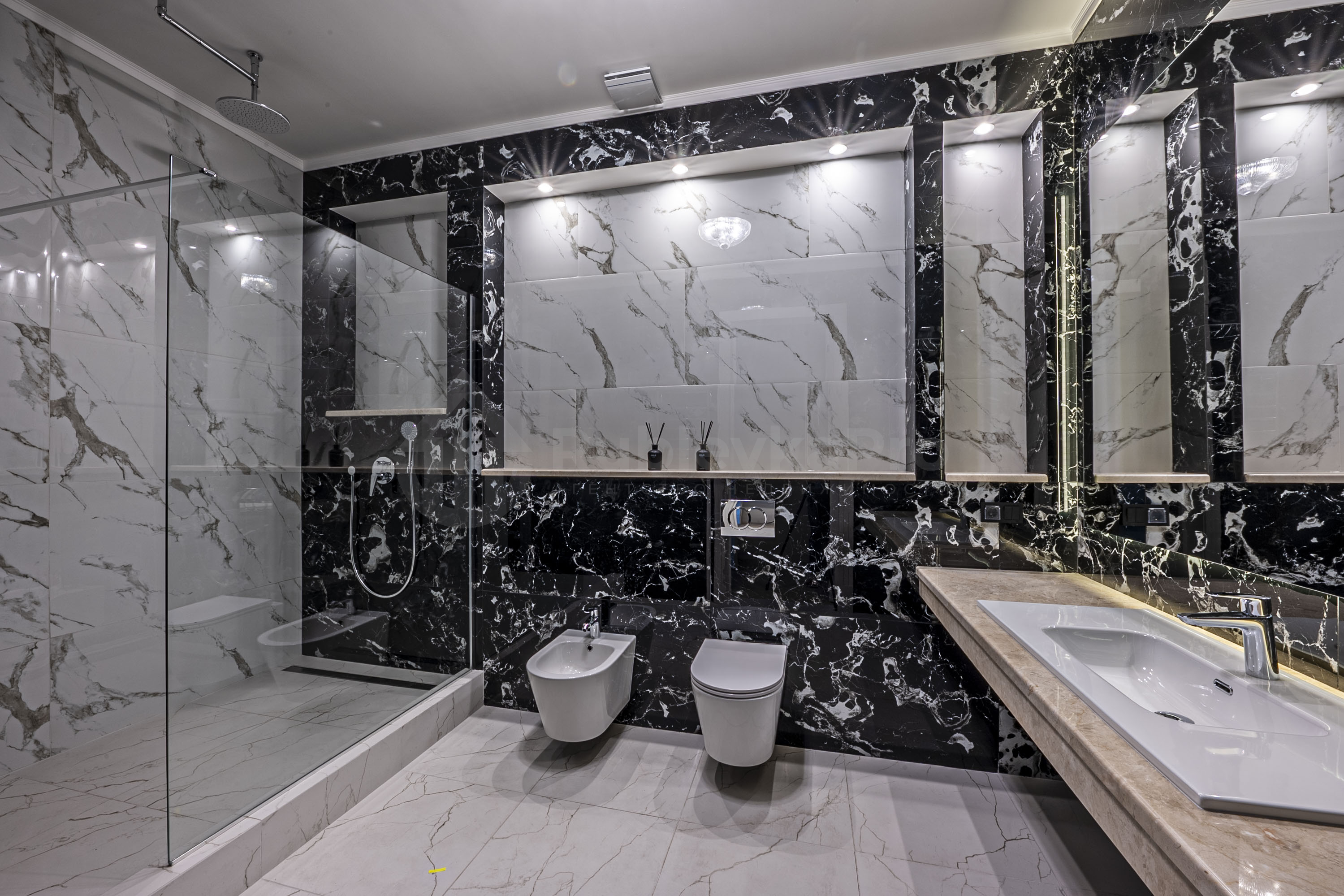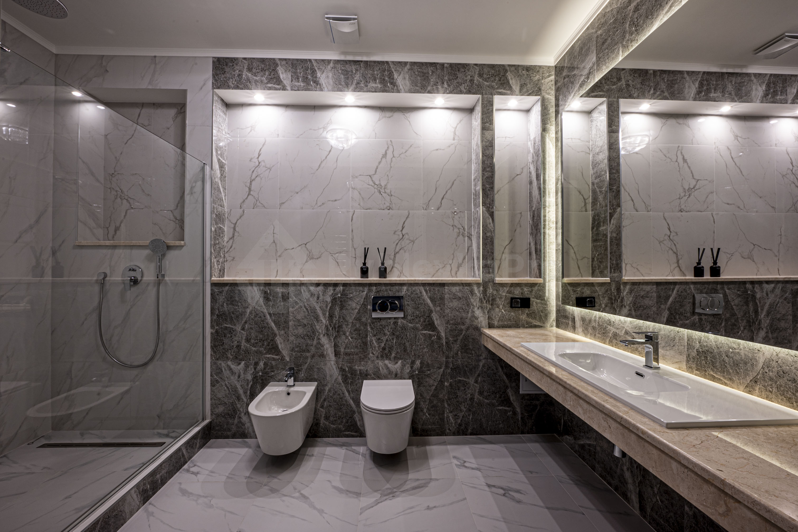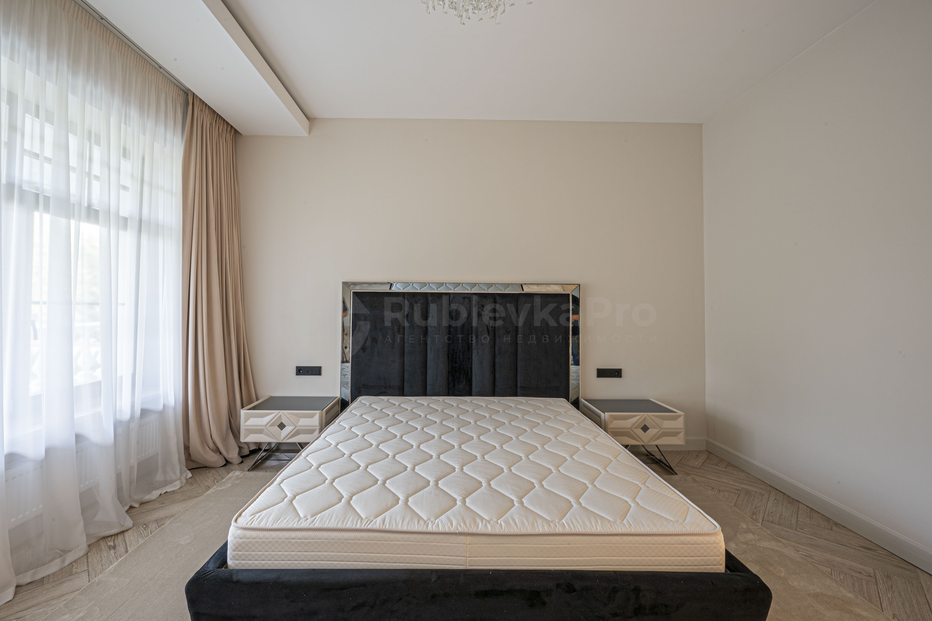 Поднимаясь по лестнице на 1 пролет Вы попадаете в зону отдыха, где расположены полностью меблированная спальня со своим санузлом и гардеробной комнатой, кабинет со своим санузлом.