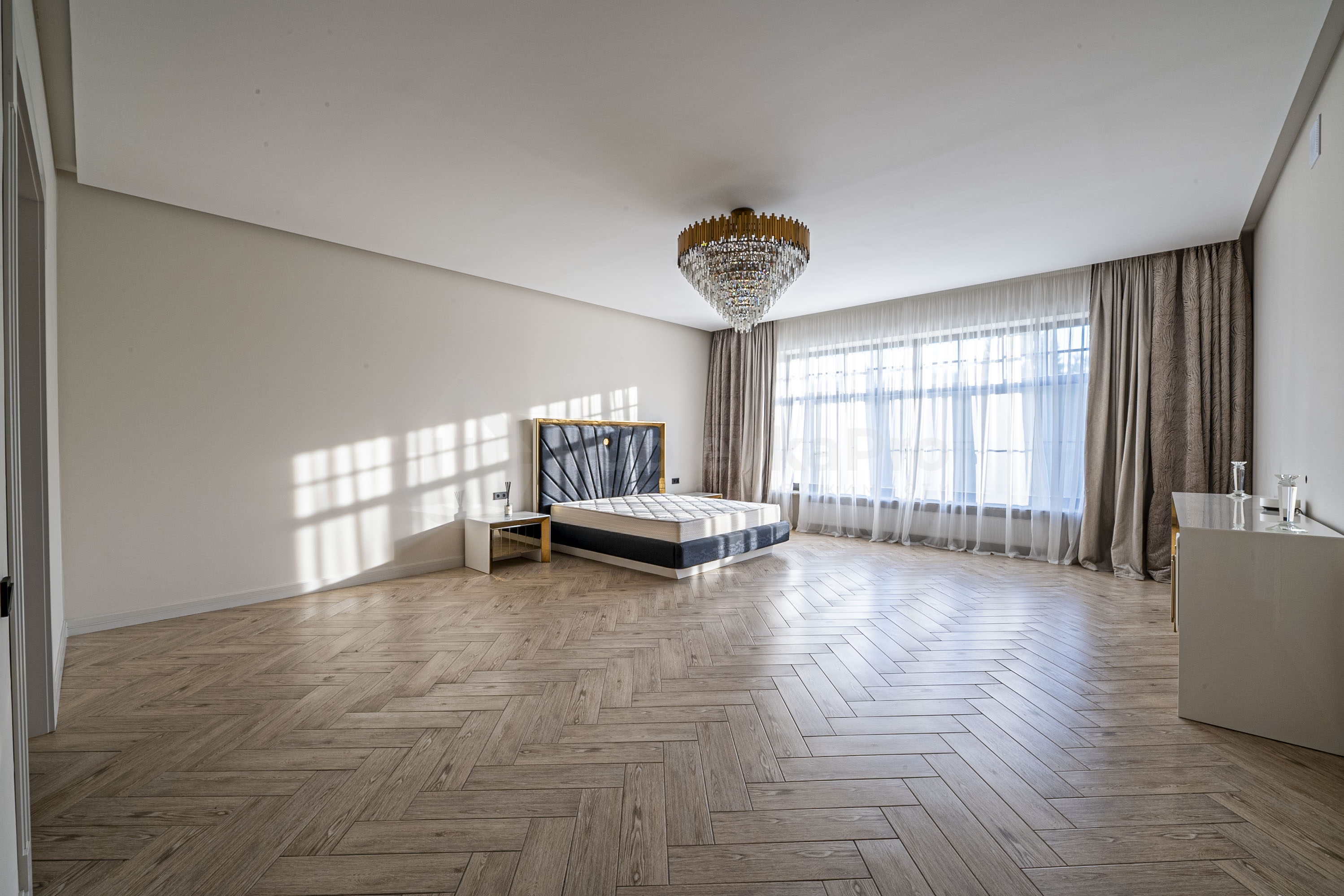 Далее попадаешь в мастер-блок, в котором огромная спальня, гардеробная комната, санузел и собственный кабинет с выходом на балкон. В кабинете ничего н будет отвлекать от работы, только чистый свежий воздух и щебетанье птиц.