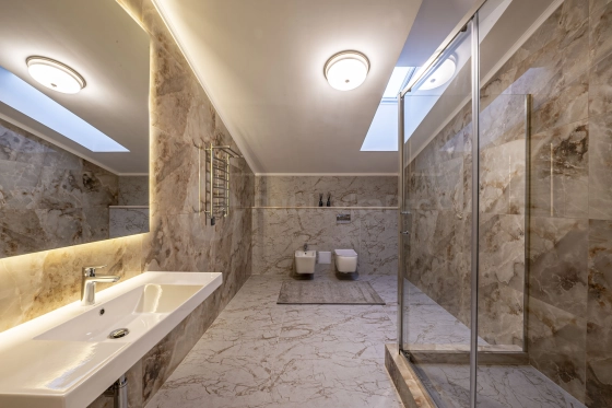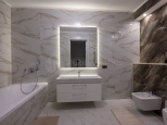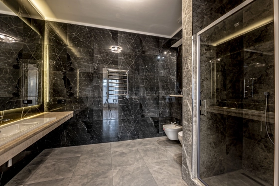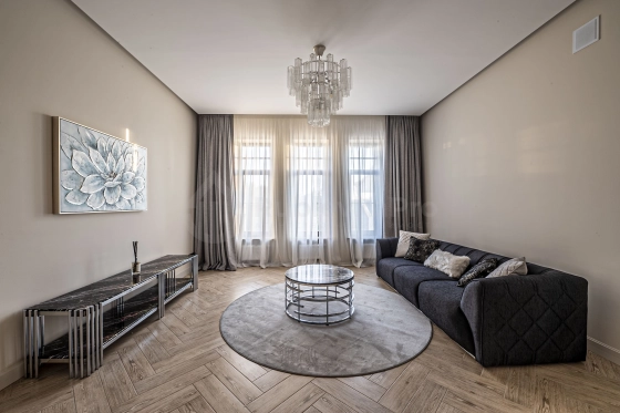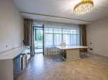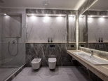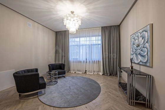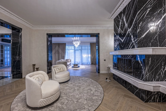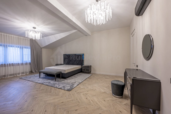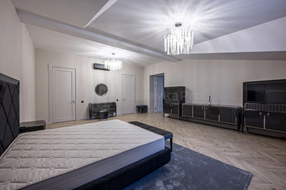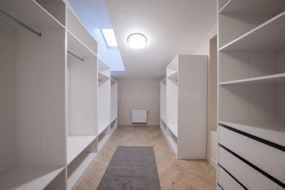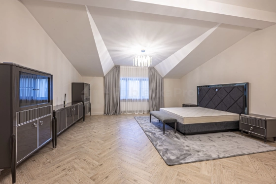 Поднимаясь по лестнице на 1 пролет Вы попадаете в зону отдыха, где расположены полностью меблированная спальня со своим санузлом и гардеробной комнатой, кабинет со своим санузлом.