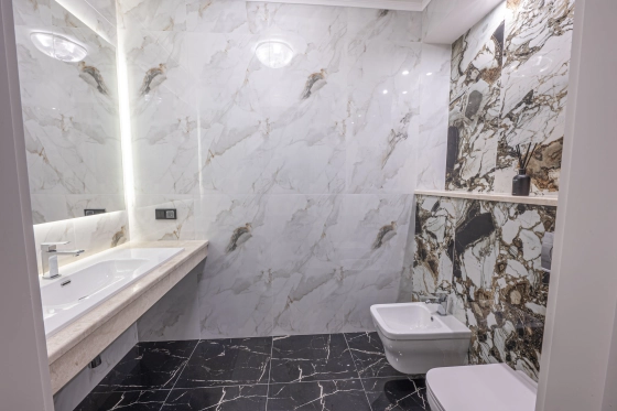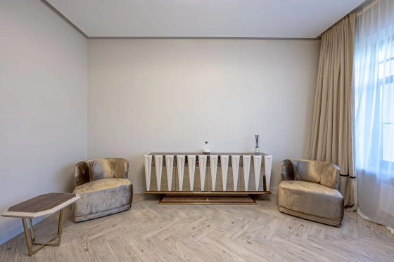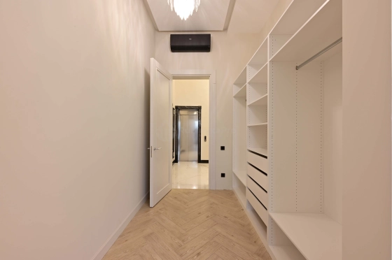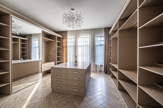 Далее попадаешь в мастер-блок, в котором огромная спальня, гардеробная комната, санузел и собственный кабинет с выходом на балкон. В кабинете ничего н будет отвлекать от работы, только чистый свежий воздух и щебетанье птиц.