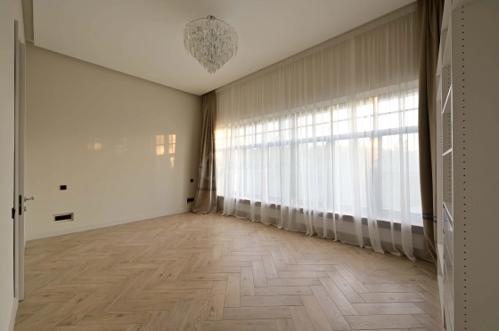 На первом этаже просторная прихожая, гардеробная комната с окном, огромная гостиная с действующим дровяным камином, перед которым можно уютно расположиться с бокалом вина и наблюдать живой огонь, слушая потрескивания поленьев.