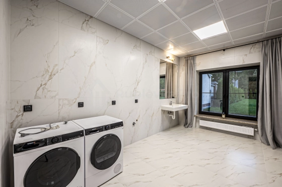 В на цокольном этаже: гостевой санузел, гараж на 2-4 автомобиля, постирочная комната с окном, кладовая, бойлерная с выходом на участок.