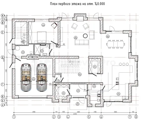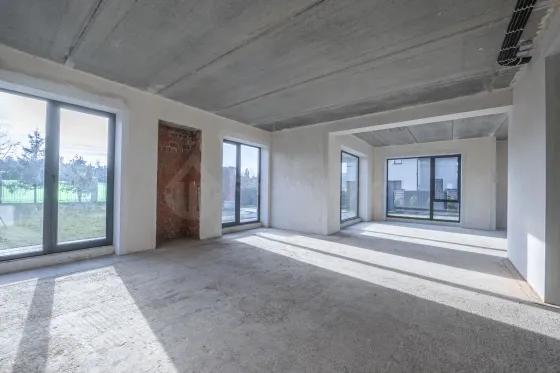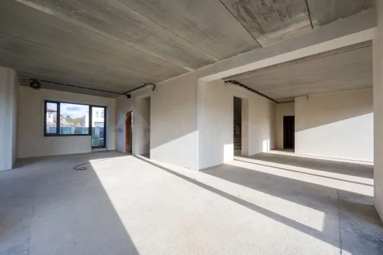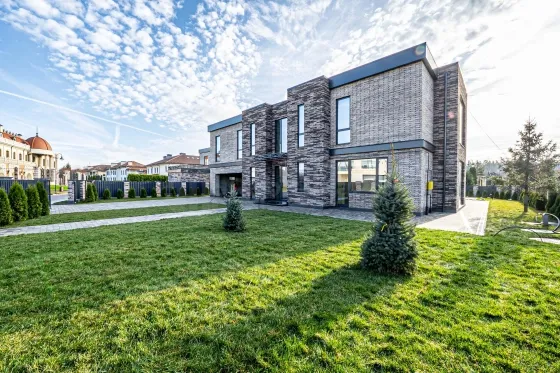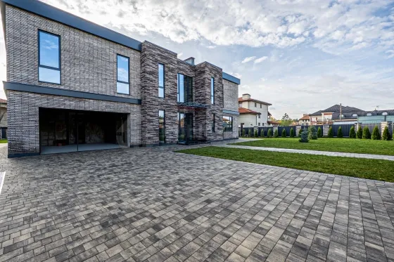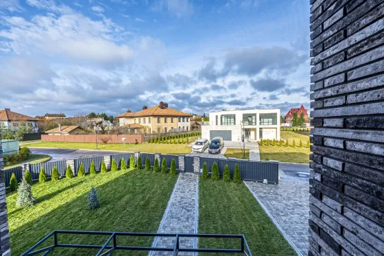 Войдите в дом и оставьте суету вместе с верхней одеждой в гардеробной. Потом Вы попадаете в просторную гостиную с камином и кухню-столовую с множеством окон в пол, ароматный званый ужин для гостей можно приготовить в закрытой технической кухне, расположенной в стороне от общей зоны. На первом этаже в спальне можно оставить гостей или родственников отдохнуть, в спальне есть свой санузел и гардероб.