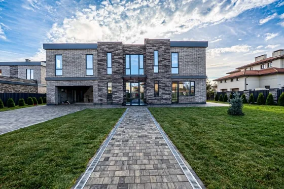 Новый двухэтажный дом построен в 2024-25 г. на участке 15 сот в престижном охраняемом КП Маленькая Италия в Павловской Слободе.