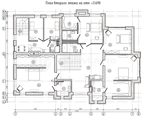 Земля ИЖС. Коммуникации центральные. По дому разведено электричество. Стены оштукатурены. Высота потолков 3,60 м.