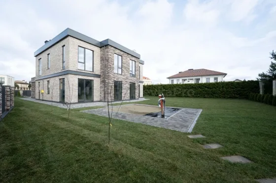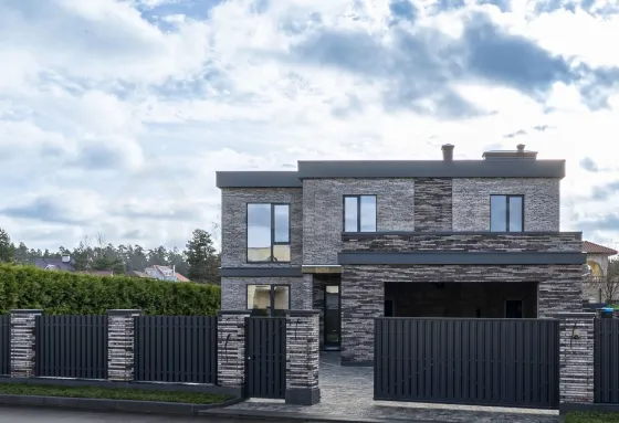 Новый двухэтажный дом построен в 2024-25 г. на участке 11 сот в престижном охраняемом КП Маленькая Италия в Павловской Слободе.