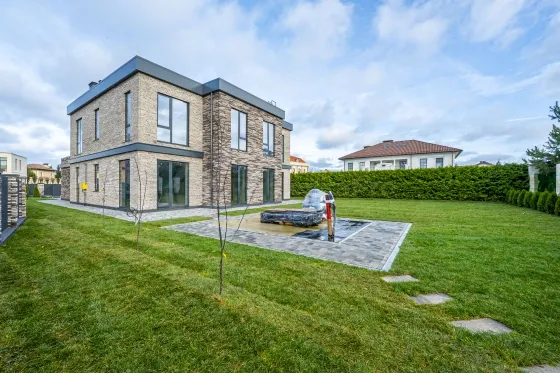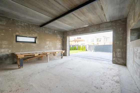 Войдите в дом и оставьте суету вместе с верхней одеждой в гардеробной. Потом Вы попадаете в просторную гостиную и кухню-столовую с множеством окон в пол, а уют и тепло добавит камин. На первом этаже в спальне есть свой санузел и гардероб.