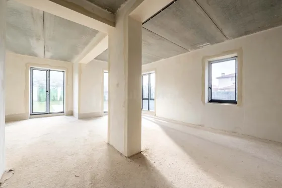 Земля ИЖС. Коммуникации центральные. По дому разведено электричество. Стены оштукатурены. Высота потолков 3,60 м.