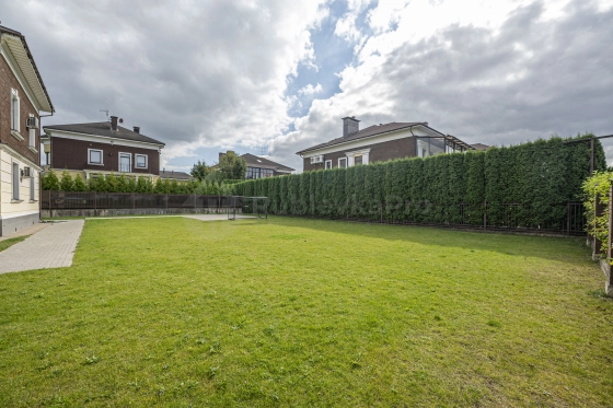 Продам светлый дом 354,1 м2 на зеленом участке 13 сот.. В доме большая гостиная -столовая с выходом на террасу и участок, кухня, оборудованная всей необходимой техникой западных брендов, гостевая спальня, гардеробная комната, гостевой санузел, бойлерная., гараж на два автомобиля. Перед гаражом есть также парковка на два автомобиля.