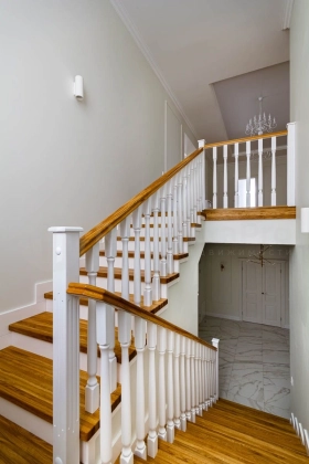 На втором этаже расположены мастер-спальня со своим санузлом и гардеробной комнатой, две детские комнаты с игровым холлом, кабинет/спальня, гардеробная комната, санузел.