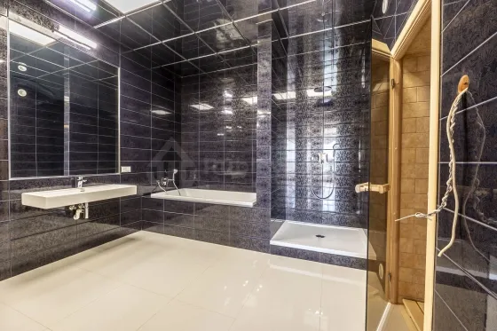 Продам 2 -х комнатную квартиру с отделкой, на 4 этаже 5 этажного дома. Просторная кухня-гостиная, большая спальня, со своей гардеробной комнатой, санузлом и внимание (!)- с собственной САУНОЙ! Большая прихожая, с гардеробной комнатой и гостевым санузлом. Из окон отрывается прекрасный вид на поселок.