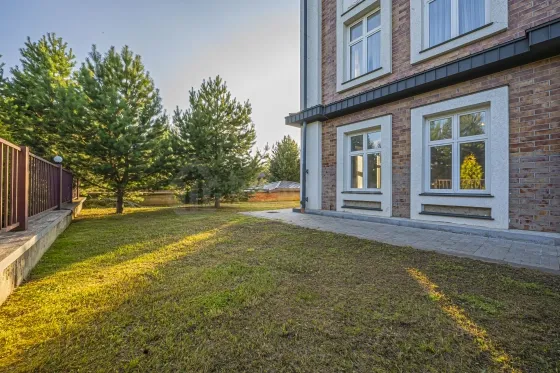 Продам прекрасную светлую 3-х комнатную угловую квартиру 183 м2 со своим большим зеленым участком. Светлая кухня-гостиная 50 м2 с высокими потолками, окна которой выходят на две стороны, спальня 28 м2 с выходом на участок, спальня 36 м2, три санузла, гардеробная 11 м2, большой коридор, в котором также можно разместить места хранения.