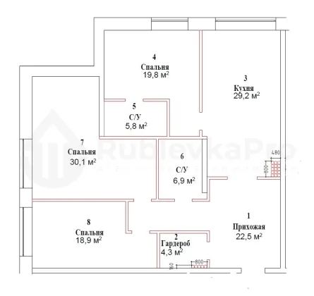 | Количество спален | 3 |