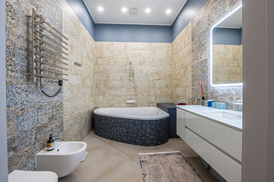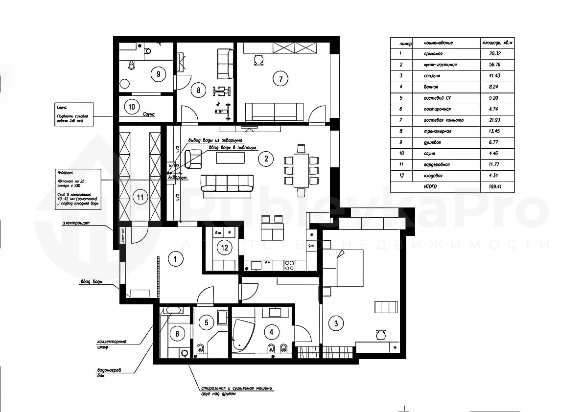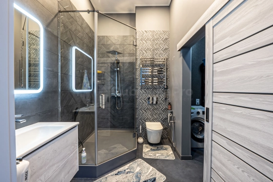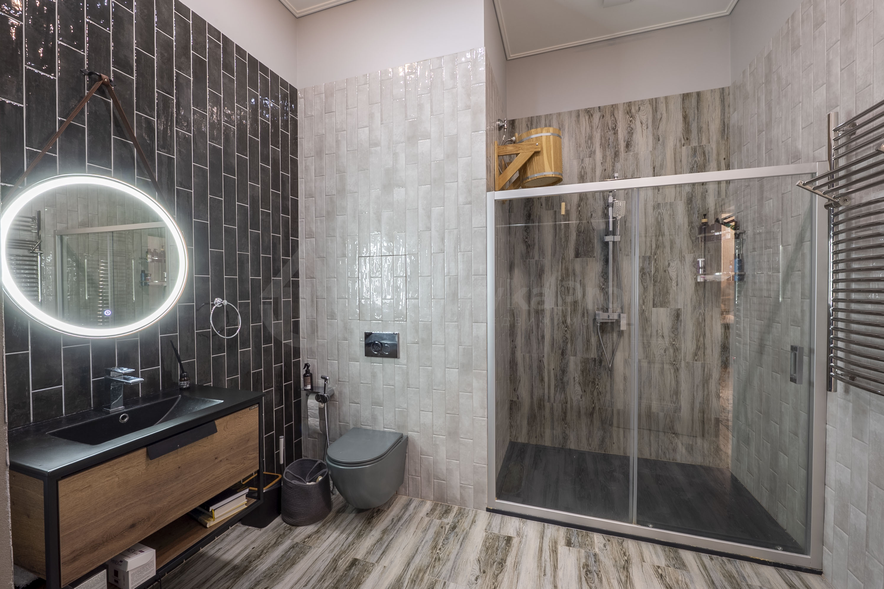 3 санузла (в одном — огромная ванна, в другом — душевая кабина с возможностью монтажа сауны, третий — гостевой санузел с системой для мойки лап собак);