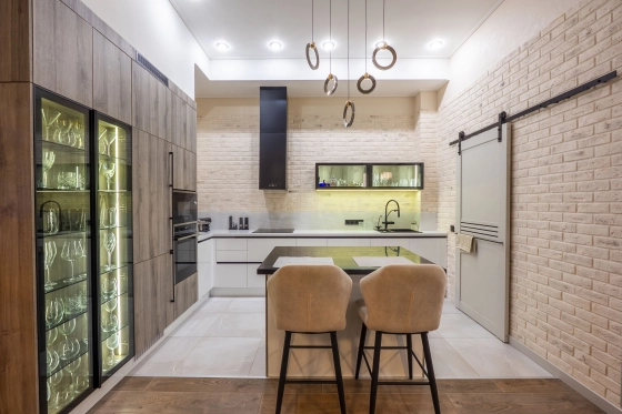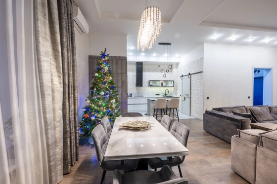 просторная гостиная‑кухня‑столовая — 56,76 кв. м (идеальна для семейных ужинов и дружеских встреч);
