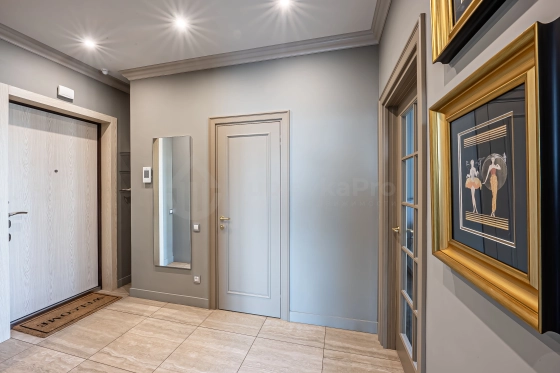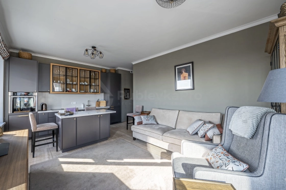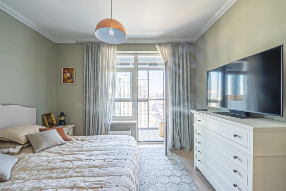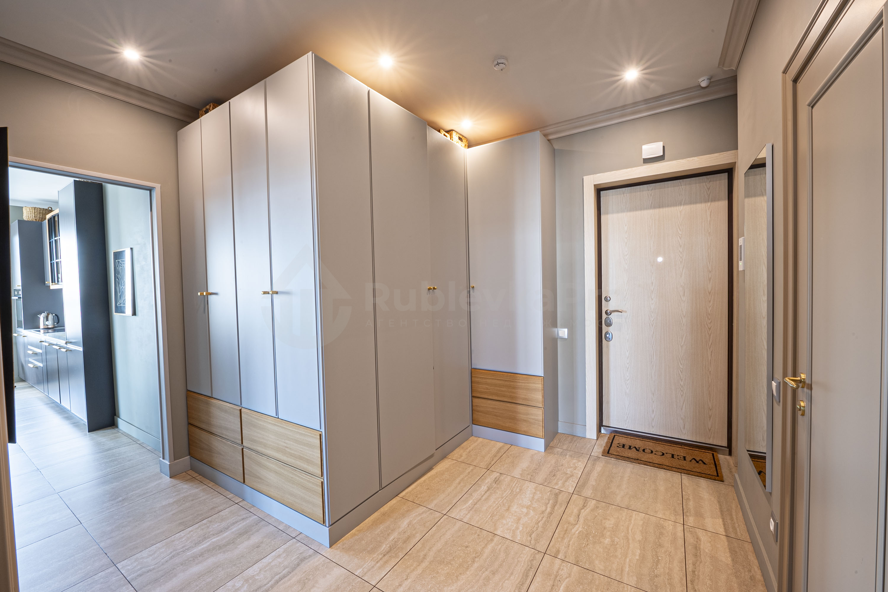Удобная планировка: кухня‑гостиная, спальня с лоджией, кабинет/спальня, просторный санузел, коридор со шкафом‑купе.