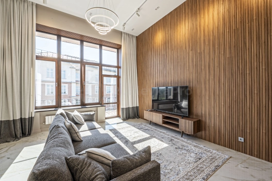 Пространство для жизни: Просторные светлые зоны с высотой потолков более 4,6 метров, авторское светодиодное освещение. Идеальная планировка для большой семьи: гостевая зона с выходом на просторную лоджию, изолированная мастер-спальня с видовыми окнами и гардеробной, две дополнительные спальни с гардеробными комнатами на втором уровне.